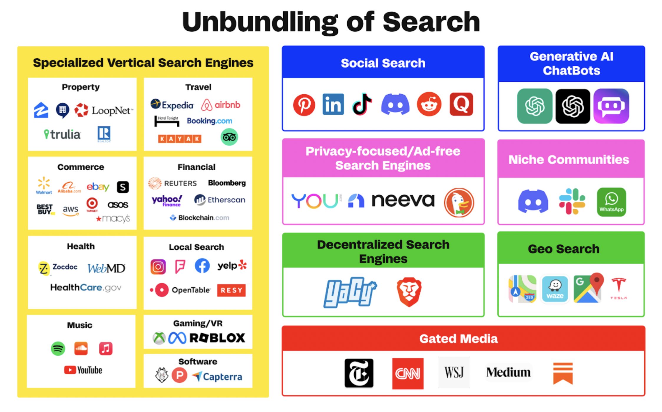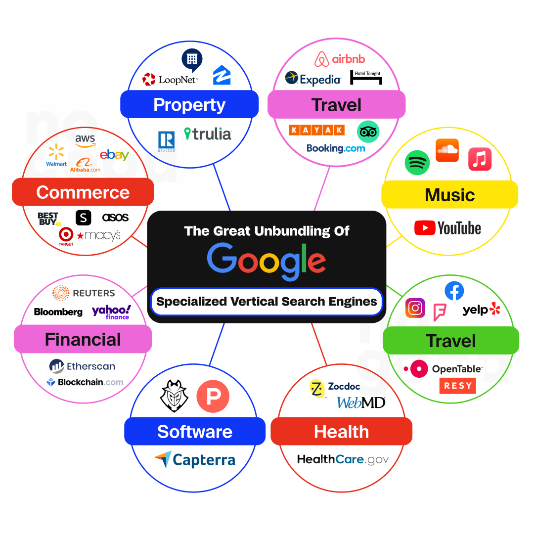 Much like commerce search, every niche category now has a specialized search engine that provides more relevant, actionable and helpful results than Google does.