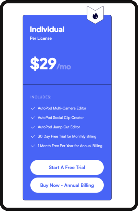 You can try AutoPod right now for free for 30 days, but after that trial period, you will have to pay $29 a month. If you’re actively podcasting, the price is definitely worth it… as you’re getting hours’ worth of work done in seconds.