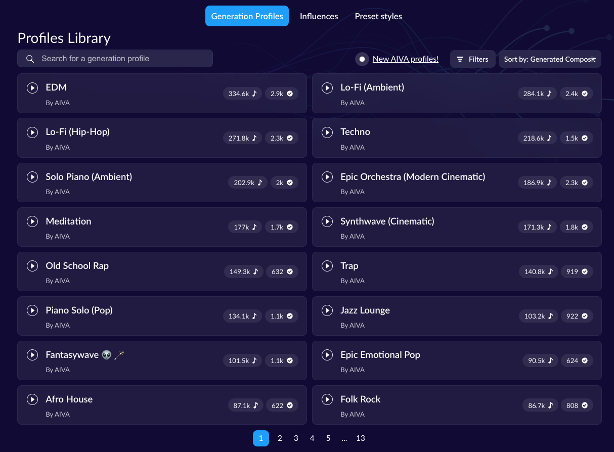 However, if you don’t know what genre you’re looking for, that’s where AIVA’s Generation Profiles come into play…