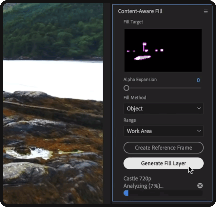 Then, navigate over to the ‘Content Aware Fill’ window and click ‘Generate Fill Layer’.