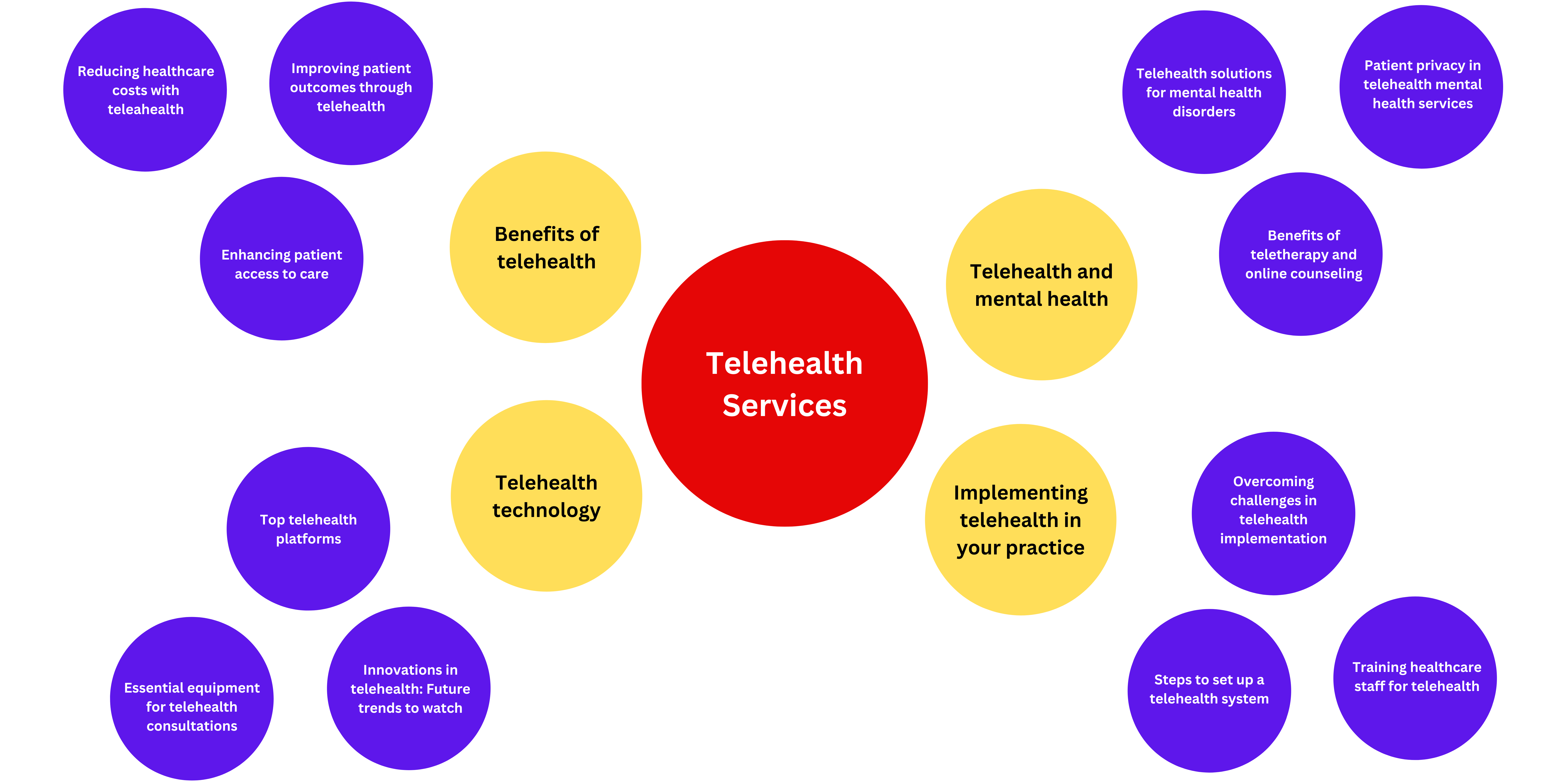 - Content clustering: Content clustering includes a main piece of content (a pillar page) on a broad topic, supplemented by related articles and resources. This method helps organize content around a central topic as well as helps with improving SEO by linking related pieces together. For healthcare, a main pillar page can be a topic around “Telehealth Services”. Supporting topics can include “Benefits of Telehealth, “How to Choose a Telehealth Provider,”, “Telehealth Best Practices” or “Telehealth for Chronic Disease Management”. These pages then need to be detailed and informative, providing a thorough overview of the main topic.t” can cover various chronic conditions, management strategies, and patient resources, linking to more detailed articles on each condition.