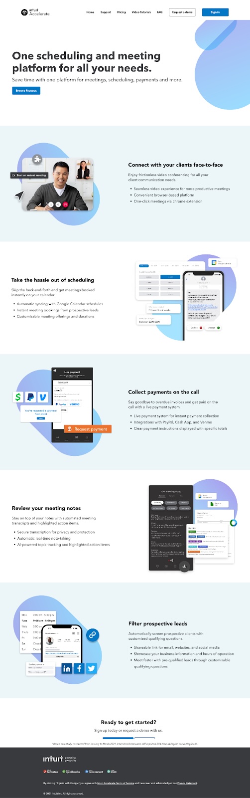 Intuit (NASDAQ: INTU), added Accelerate to its network of products which includes TurboTax, Credit Karma, QuickBooks, and Mailchimp. Accelerate is a video conferencing platform for small-medium businesses that allows them to instantly schedule meetings with clients, securely export auto-transcriptions from conference calls, and conveniently receive client payments in real time. Accelerate offers its users an easy way to connect with their clients.