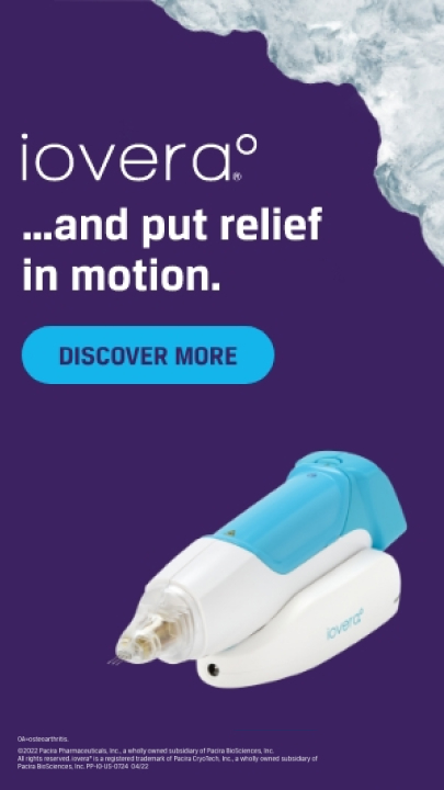 iovera° is a revolutionary cryoanalgesia device that provides patients with fast and effective pain relief. Developed by Pacira BioSciences, the hand-held device delivers precise, cold temperature doses to targeted nerves. This temporary interruption of nerve function prevents pain signals from reaching the brain, resulting in immediate and sustained pain relief.
