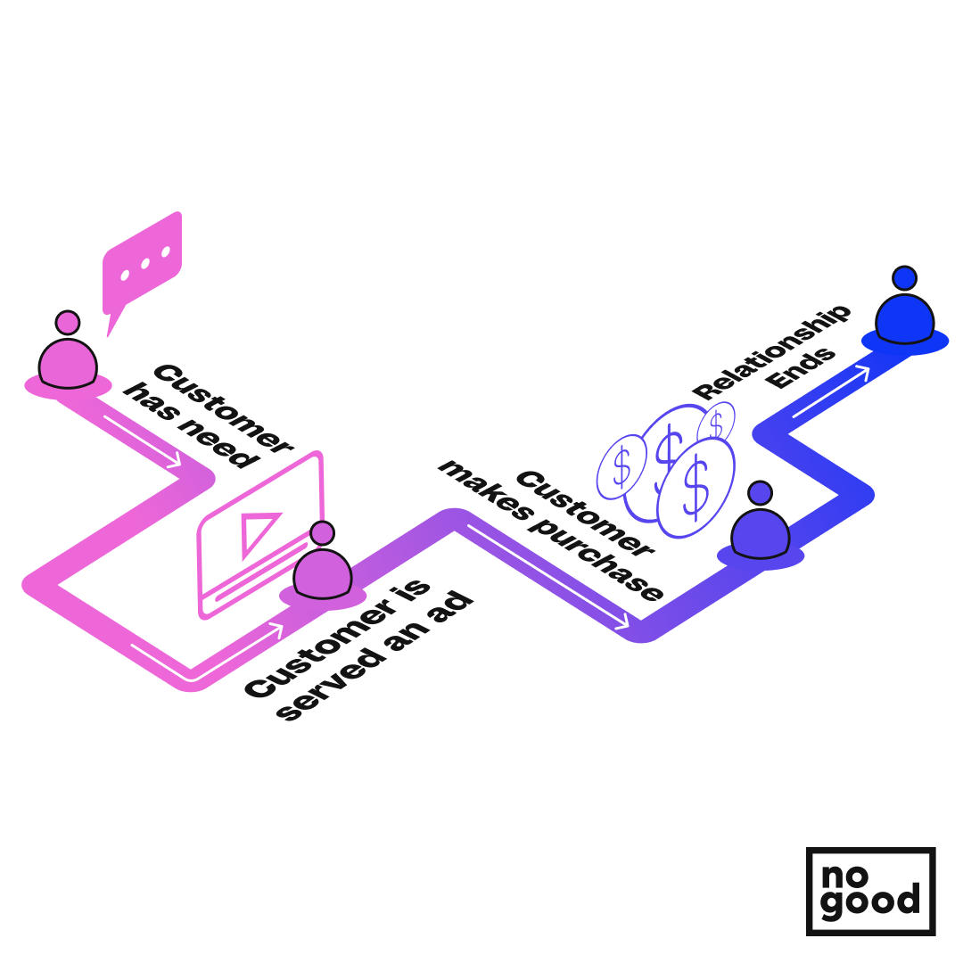 In journey one, the customer has a specific need, they’re served an ad based on their previous behaviors to suit that need, they move to purchase, and if the product suits the needs they may or may not purchase again depending on how well it works, whether the product is competitively priced, or any other number of factors.